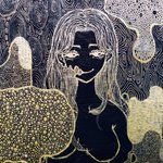「 夢裡 」 ▷20cm丸キャンバス ▷アクリル絵の具 ▷ホワイトボールペン #絵描きさんとつながりたい #イラスト好きと繋がりたい #アート #ペン画 #キャンバス #パステルカラー #pastel