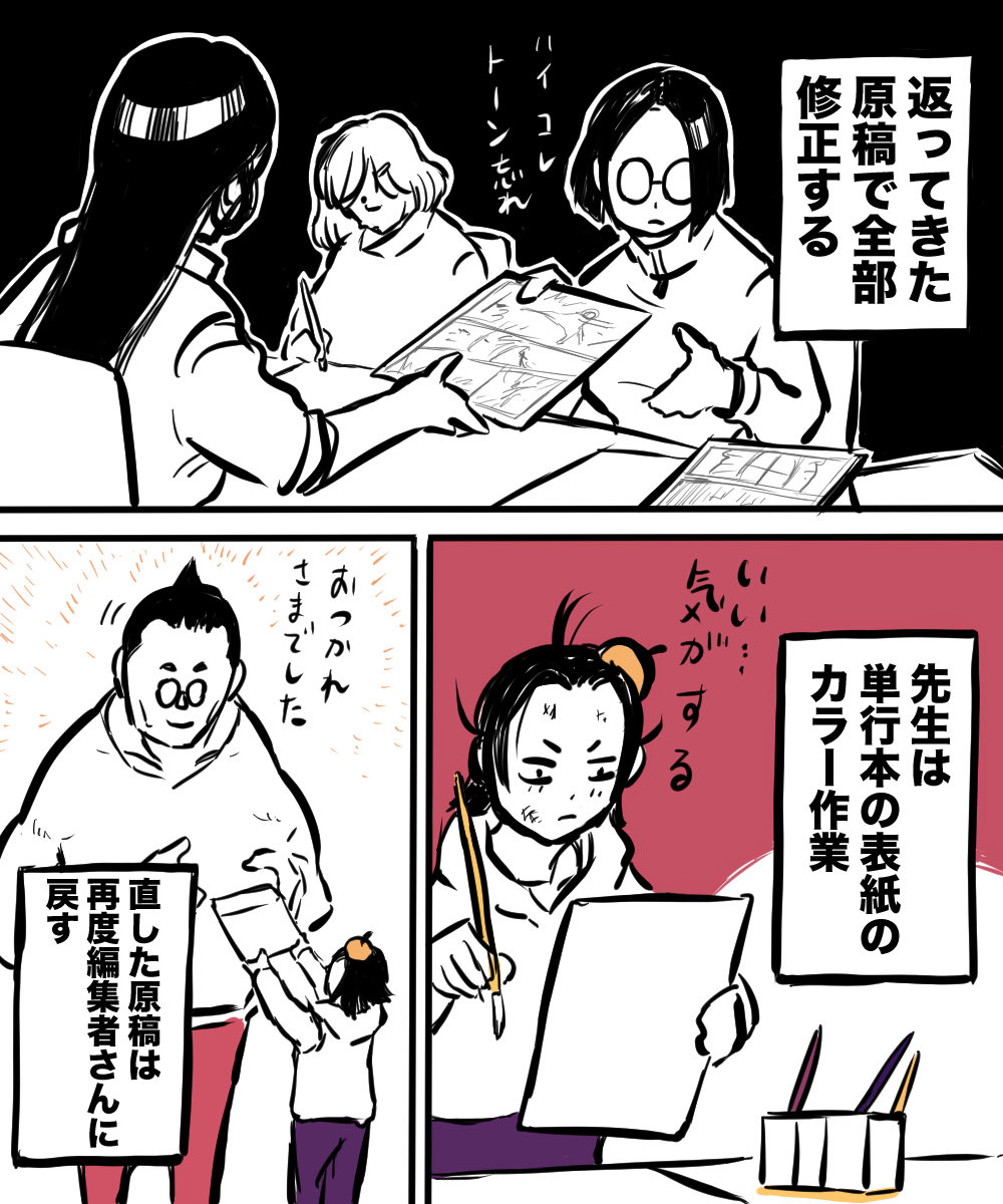 「ドタバタ!漫画家&アシスタント1週間スケジュール!」⑨ 先生がペン入れ終わったら先ずはホッとします😆 ↓ブログ「もみあげカワウソのマンガな話」 harumaki-manga-energy.com #漫画が読めるハッシュタグ #マンガ #漫画家 #漫画アシスタント