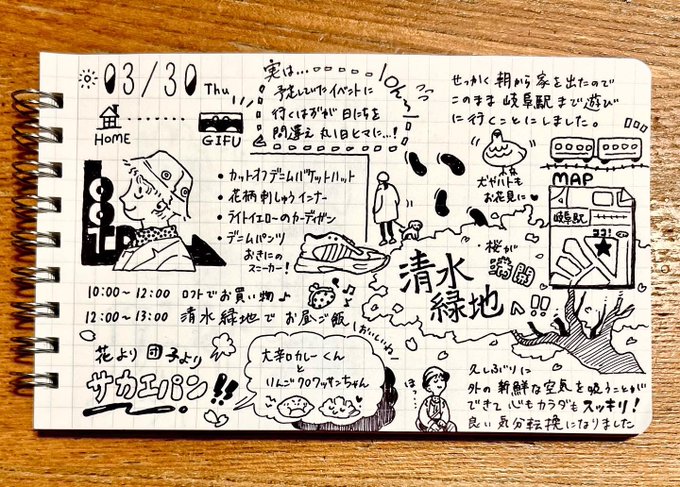 0 3 03/30 今日のらくがき日記 清水緑地へ行ってきました! サカエパンとても美味しかったです🥐 #今日のらくがき日記 #イラスト #ペン画 23/03/30 18:39
