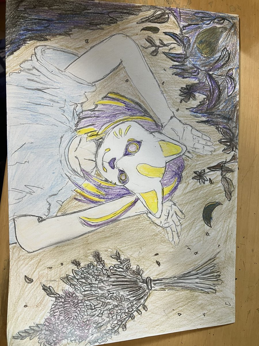 フォニイを描いてたら背景が寂しかったからなんか描いたらまぁ、うん ♡押してくれると嬉しいです #描いてみた #フォニイ #絵 #色鉛筆 #人 #ボカロ