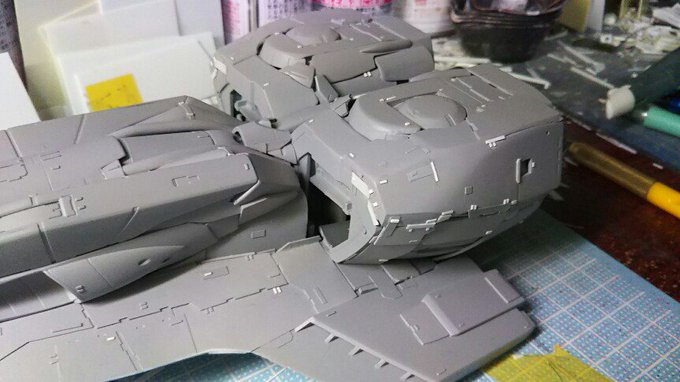 完成までいったのはグワジンだけだった ミキシングでジオン艦艇を作る 第3弾 グワジン級戦艦 ほぼ1/1000 全長470㎜ 全幅300㎜ 2020 2月完成 2199ヤマト オージェ PGザク使用 #今年作った模型晒そうぜ #Twitter模型祭 #ガンプラ