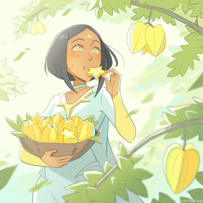 I remembered star fruit exists. So here’s a Stellar Gal eatin a stellar fruit 🌟 #oc #superhero