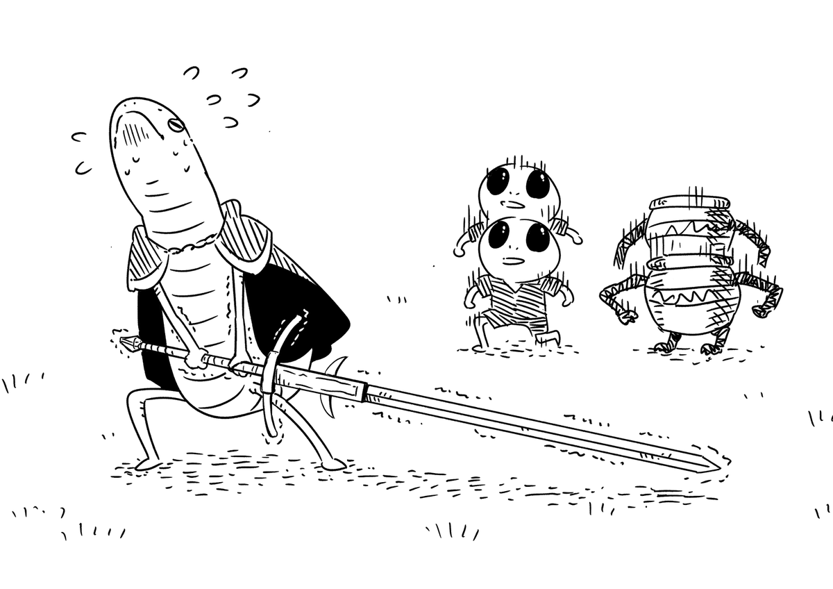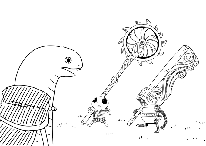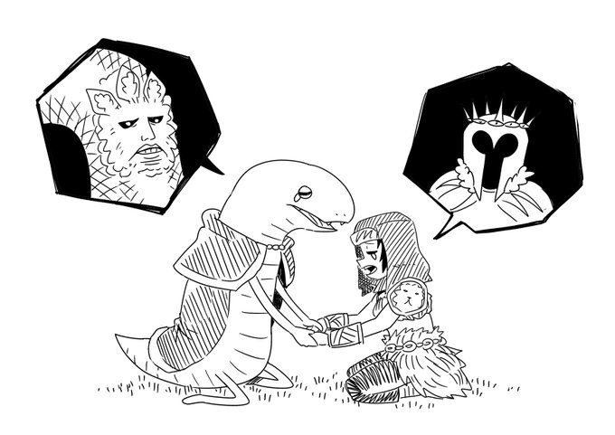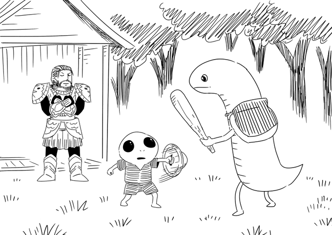 Rya and Knight Bernahl teaching Little Albinauric how to parry after a shameful lose to the duelist #ELDENRING #EldenRingFanart #eldenringart