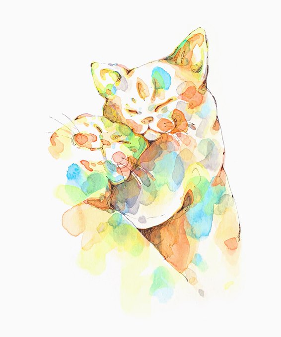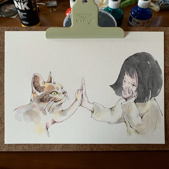 1 15 ハイタッチ #art #drawing #illustration #ドローイング #イラスト #猫 #ねこ #ネコ #neko #cat #女の子 #カラーインク #ボールペン #墨 #水彩 #絵 #ハイタッチ #ニャンフェス 23/04/15 11:34