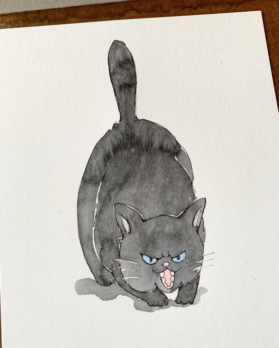 1 11 にゃー 今日はリンパが腫れて虫の息だったので会社を休んじゃいました😭 #art #drawing #illustration #ドローイング #イラスト #アート #cat #猫 #ねこ #ネコ #カラーインク #ボールペン #墨 #水彩 #絵 #黒猫 23/04/04 16:17