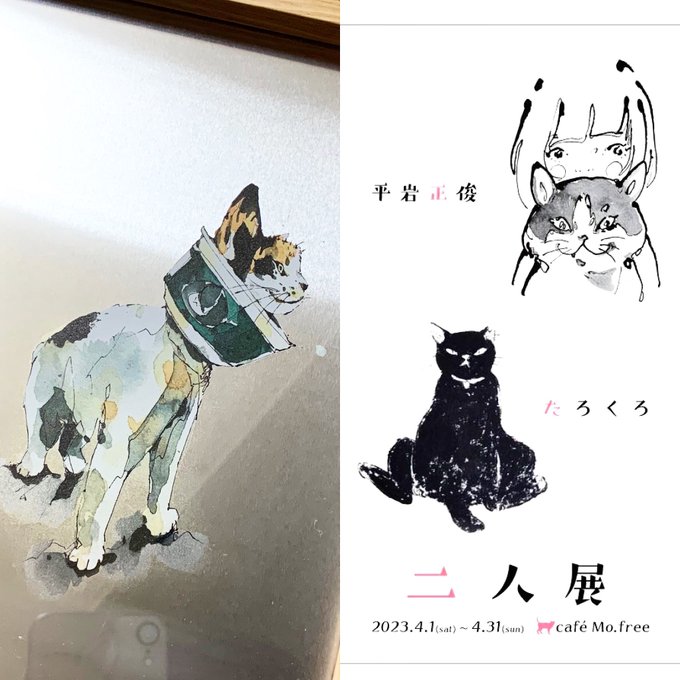 5 22 明日から、たろくろさん( @haitsukuroneko )さんと大泉学園にあるカフェモフリーさん( @cafe_Mofree )で二人展が始まります☺️ 上質仕上げのなつ先生をご用意させていただきました✨ どうぞよろしくお願いします。 #art #drawing #illustration #イラスト #アート #cat #絵 #東京 #練馬区 #大泉学園 23/03/31 22:42
