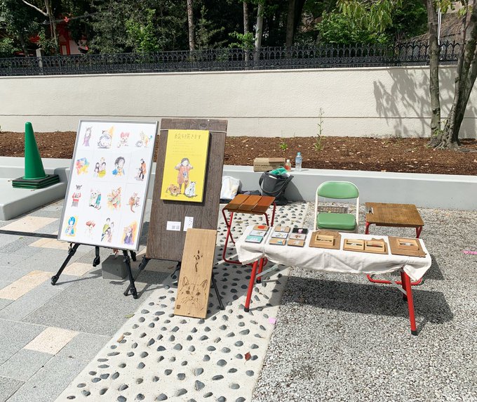 1 4 サンビル準備完了⭐️ どうぞよろしくお願いします☺️ 今日は吹き飛びませんように🙏 #art #drawing #illustration #ドローイング #イラスト #アート #カラーインク #ボールペン #墨 #水彩 #絵 #cat #猫 #ねこ #ネコ #女の子 #墨 #クジ #サンビル #サンデーピルヂングマーケット 23/04/16 10:40