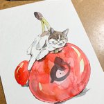 これくらいの抜け感がいいな🍒 #art #drawing #illustration #ドローイング #イラスト #アート #cat #猫 #ねこ #ネコ #カラーインク #ボールペン #墨 #水彩 #絵 #さくらんぼ #Cherry #猫とさくらんぼ展 #ハイツくろねこ