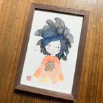 お気に入りのウォルナットの額✨ アクリルよりガラス派です☺️ #art #drawing #illustration #ドローイング #イラスト #女の子 #カラーインク #ボールペン #墨 #水彩 #絵