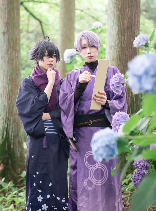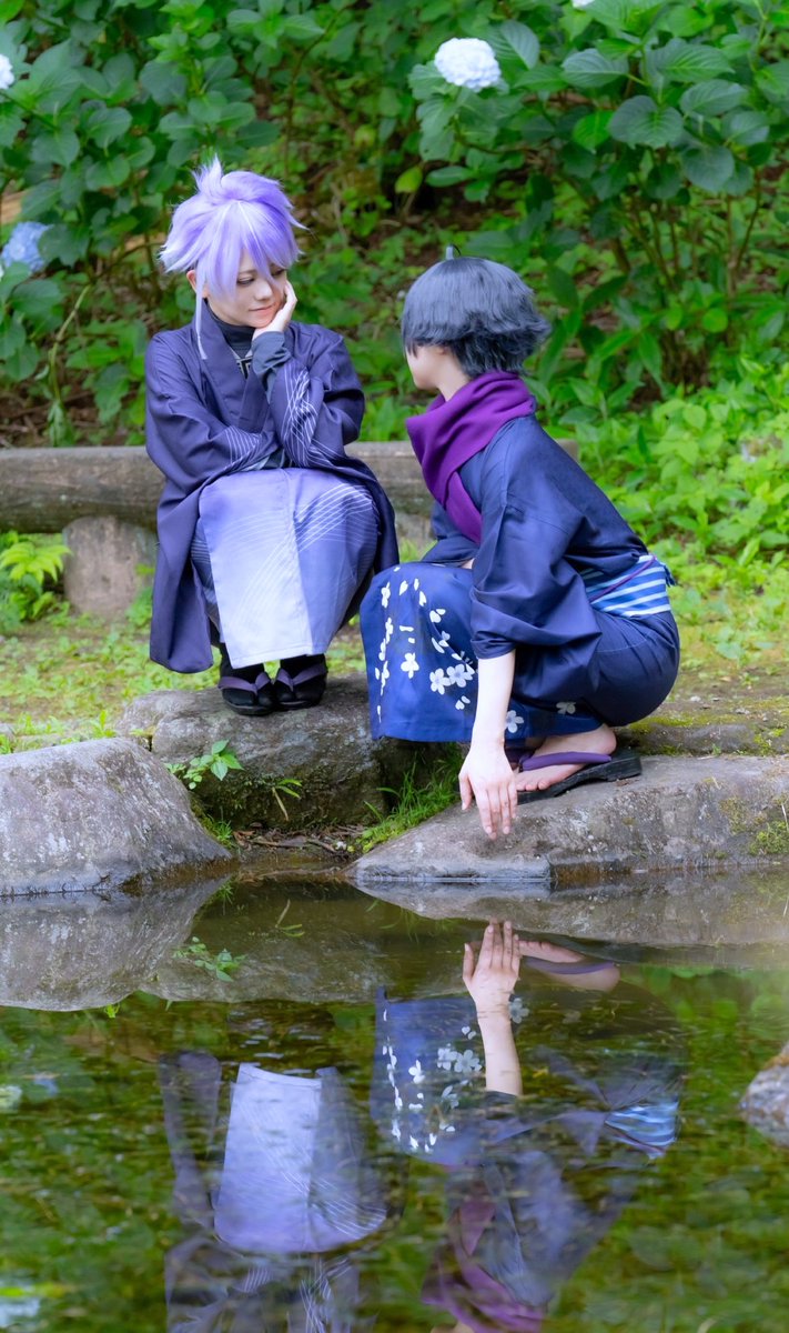 【Cosplay/コスプレ】刀剣乱舞 ┈┈紫陽花は夏の季語です ┈┈ふむふむ…興味深い……! 五月雨江 @vr0u9 水心子正秀 @kyukyukyuuri