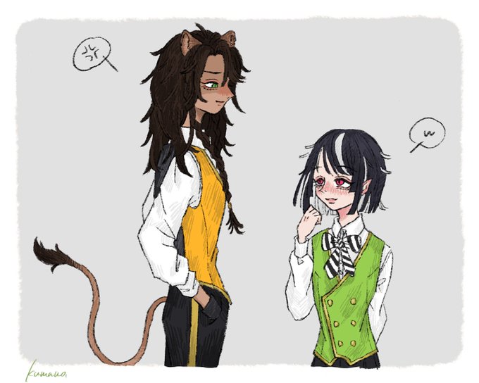 0 1 リリアの双子の妹リリンちゃんシリーズ 『犬猿の仲……?』 (この2人とてもいいコンビだと思う⁽ ´꒳`⁾⸝⸝⸝♡︎) #twst夢 #twstプラス #レオナ #not監督生 #twst創作生 22/10/12 17:59