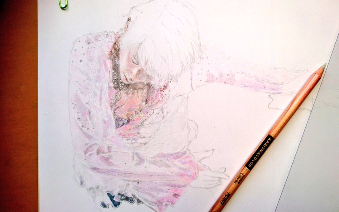 あ〜(;´∀`)装飾何とかしてください…。ヒイコラ言ってここまで来ました。 クリア画像探しの旅に出なくては🏃🔍 #羽生結弦 #羽生クラスタ絵画部 #色鉛筆画 #Coloredpencildrawing