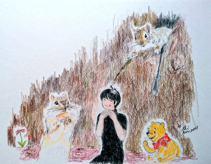 🐰Rabbit rabbit white rabbit 🐰 おや、その子はどうしたの? 跳び疲れて寝てしまったんですよ。 しばらくそっと休ませてあげようか。 ──天地さん、雀たちがあなたを見守っていますよ。 #羽生結弦 #羽生クラスタ絵画部 #色鉛筆画 #Coloredpencildrawing
