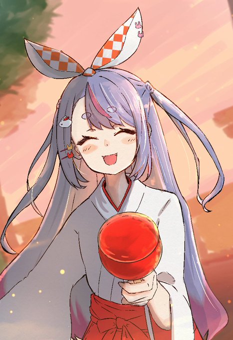 62 411 巫女服みみたやにリンゴ飴をもらいたい人生だった #ミミ画 22/08/12 21:28