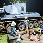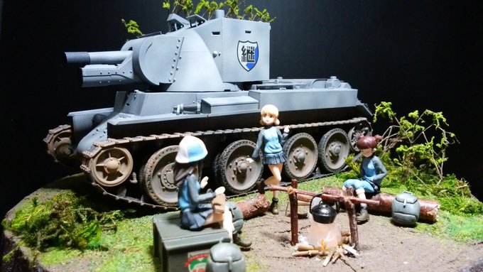 #今年作ったプラモ晒そうぜ BTー42継続ジオラマ ソーラー首振り人形改造のアンツィオ3人組 無印1/100ガナーザクとMG06ザクミキシング(制作中にMGガナーザク発売ヽ(;▽;)ノ) 今年は家族の事でバタバタして作れなかったなぁ。 来年は沢山完成させるぞ!!