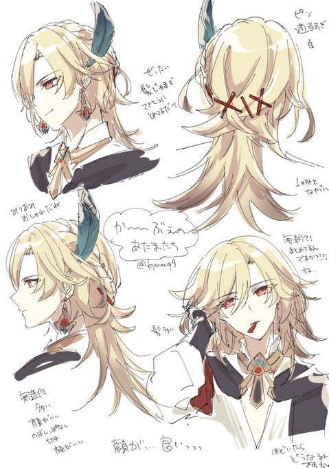 10 52 カーヴェの髪の構造を理解する必要性が生まれたので描いてみたらくがきです 23/05/13 22:39