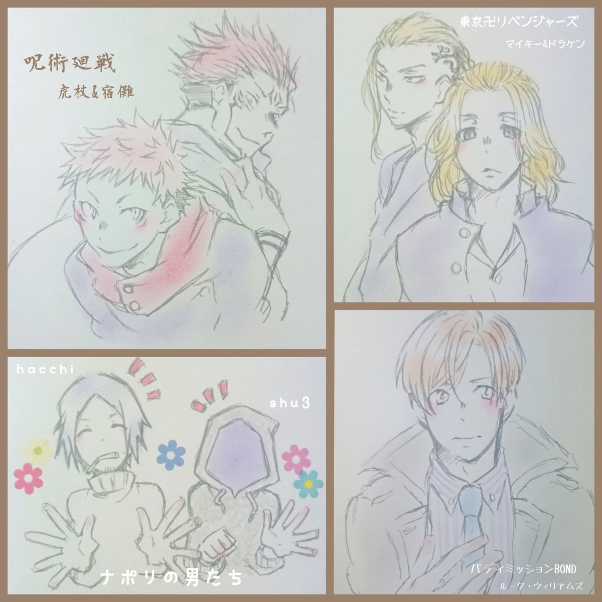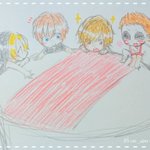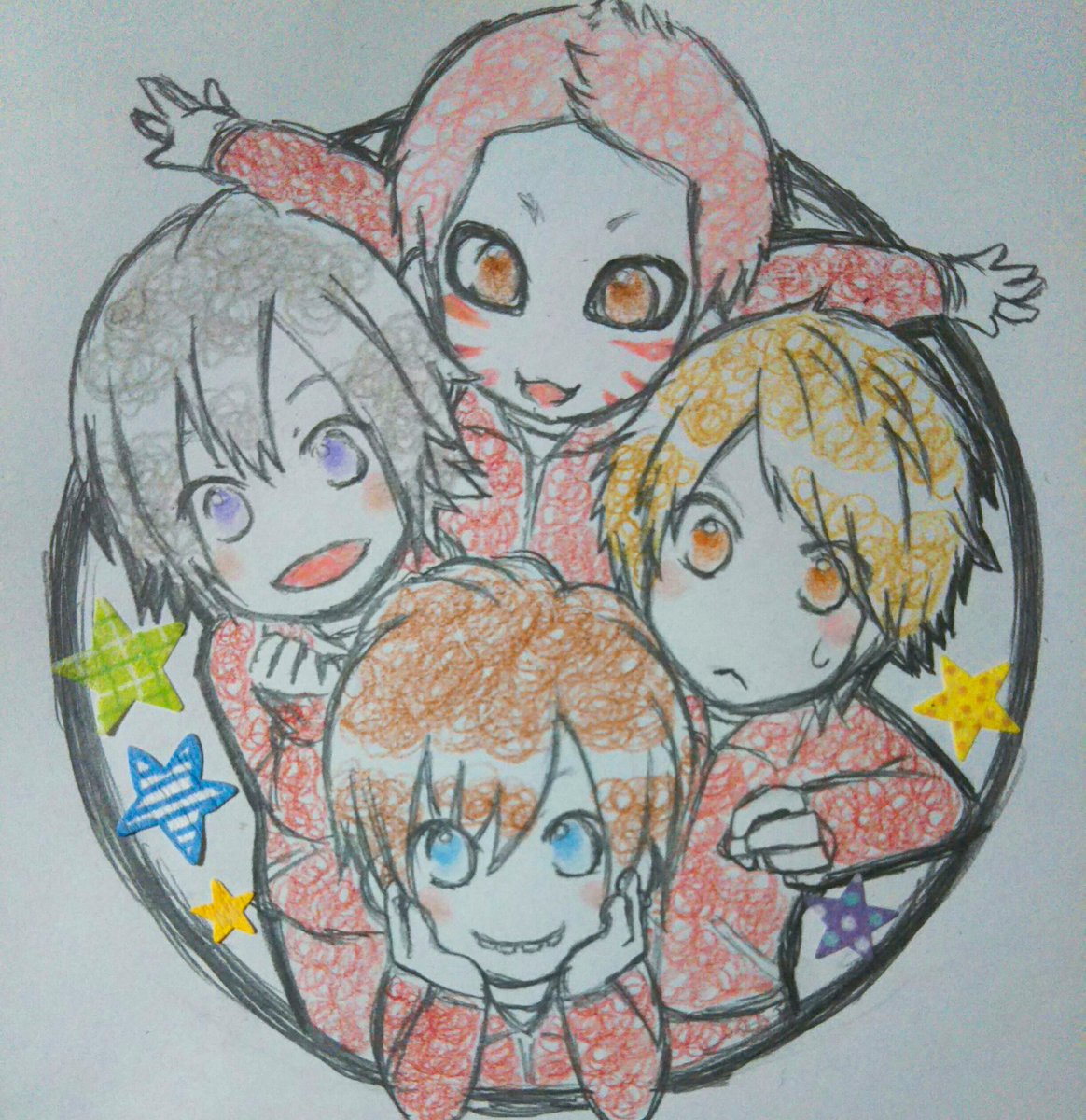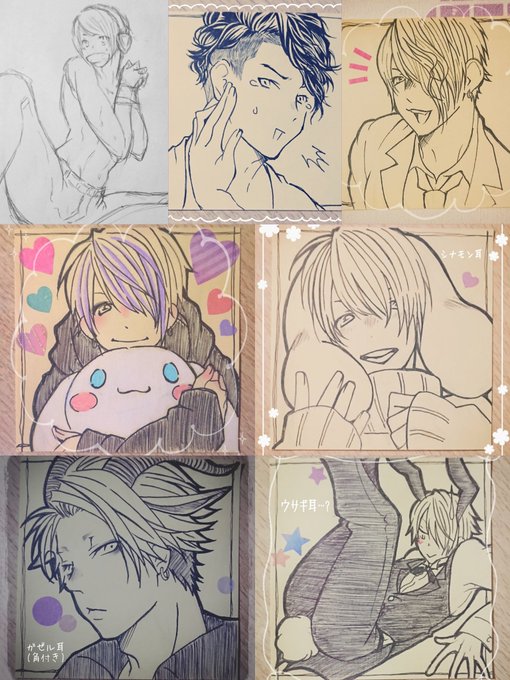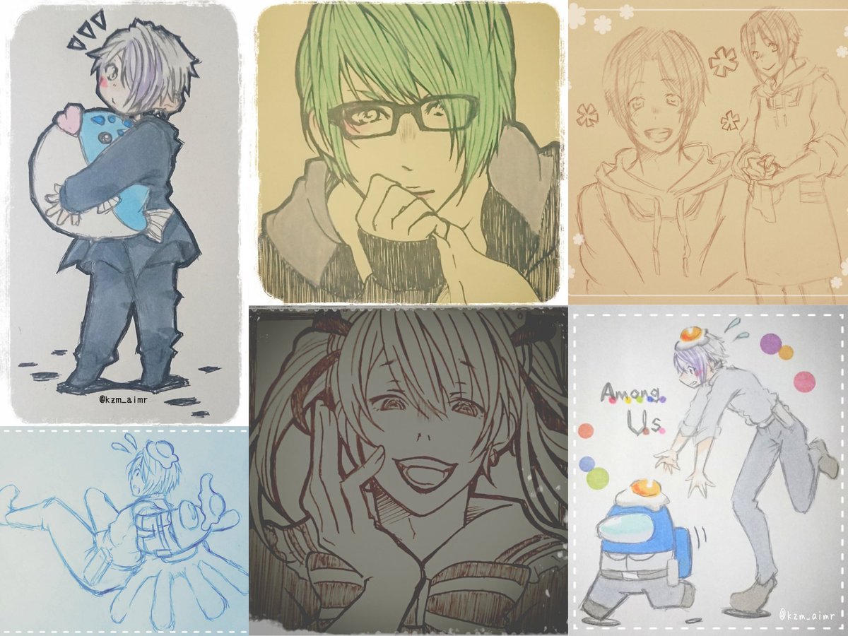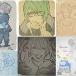 #みなさん去年の今頃はどんな絵描いてましたか フォロワさんとなんちゃってコラボカフェのコースター交換探してみたり、麺を和菓子に詰めてみたり、リモートご当地トークの推しが尊すぎて描き殴ったり、新アー写で召されかけながらも描き殴ったり、推しが尊くて尊くて震えながら推し描いてましたね😌✨