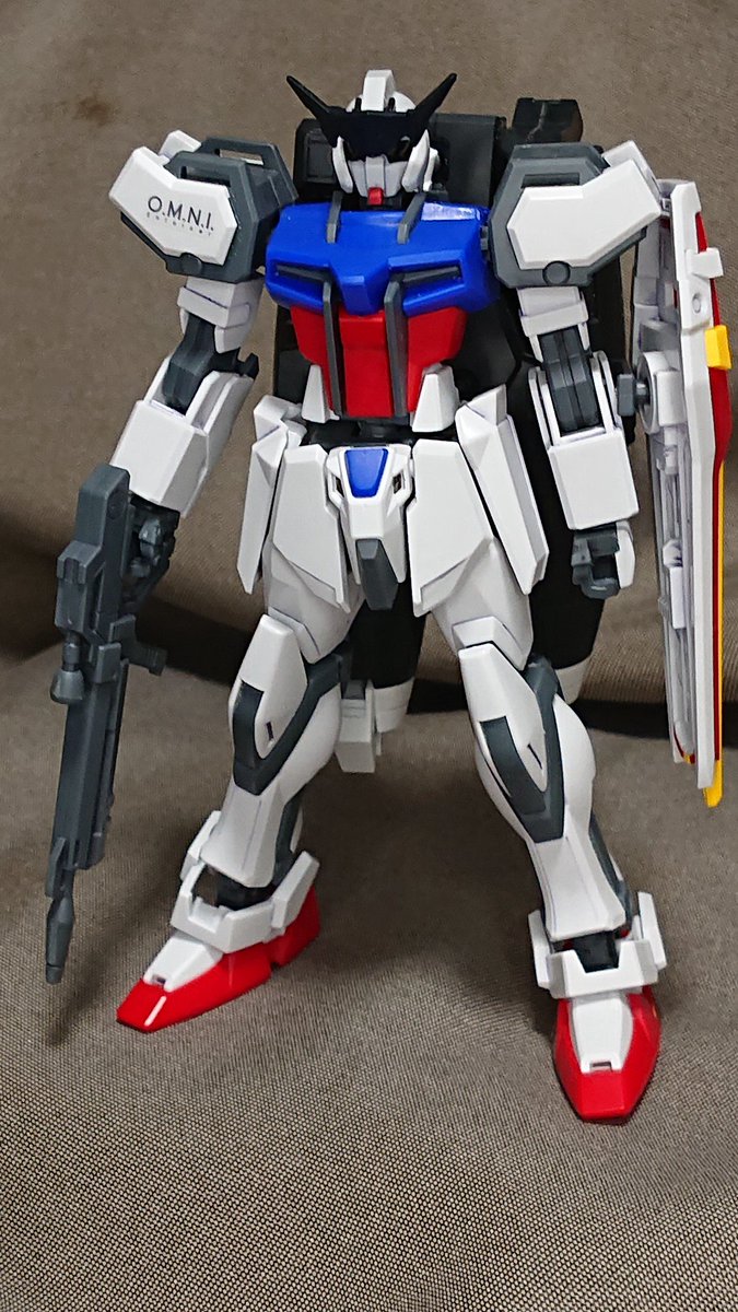 完成。 ベビーバレルストライクガンダム。 主にエントリーグレードのストライクと アウンリゼアーマーのミキシングです。 #ガンプラ