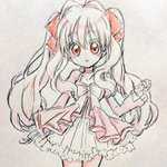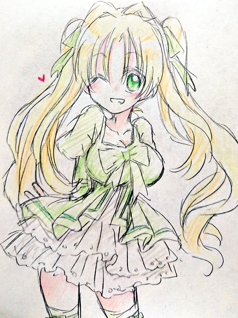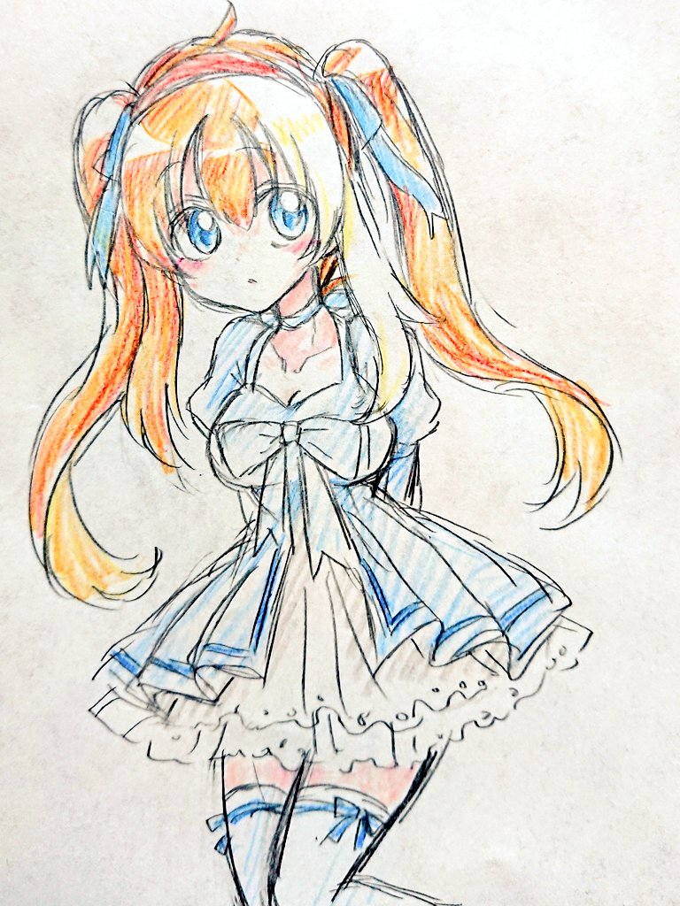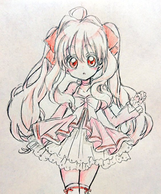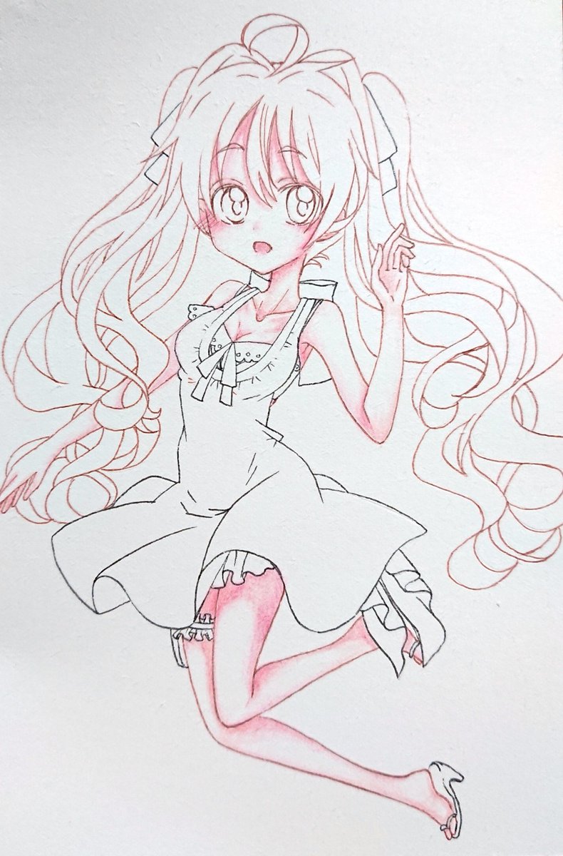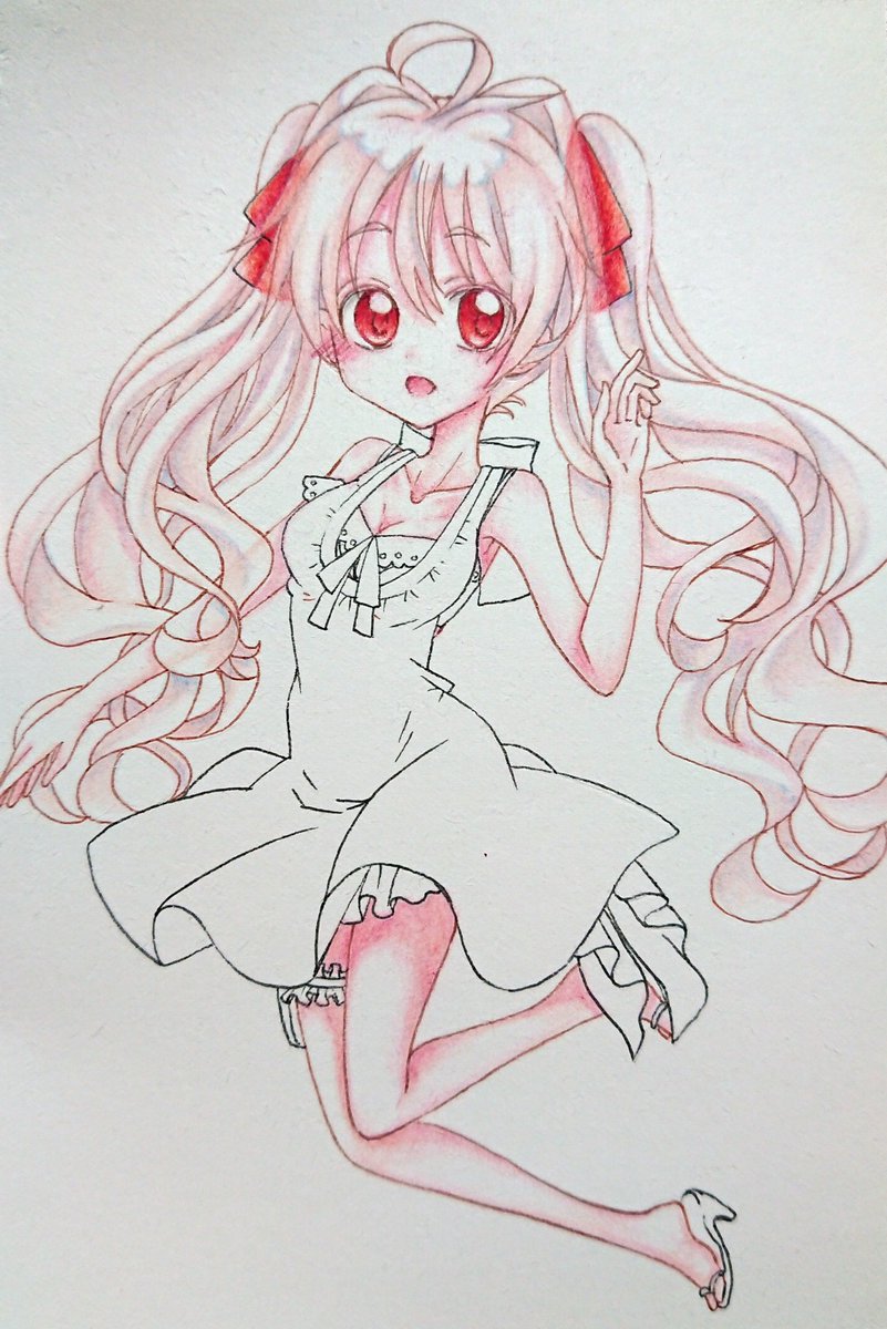 頭塗ったので、ここまで(髪リボンの色透けてる感じにした) #途中経過 #色鉛筆