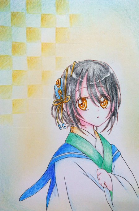朱鷺(しゅろ)夏服(普段着)完成。 #グリマルファッション_夏祭り #グリマルシェ #色鉛筆