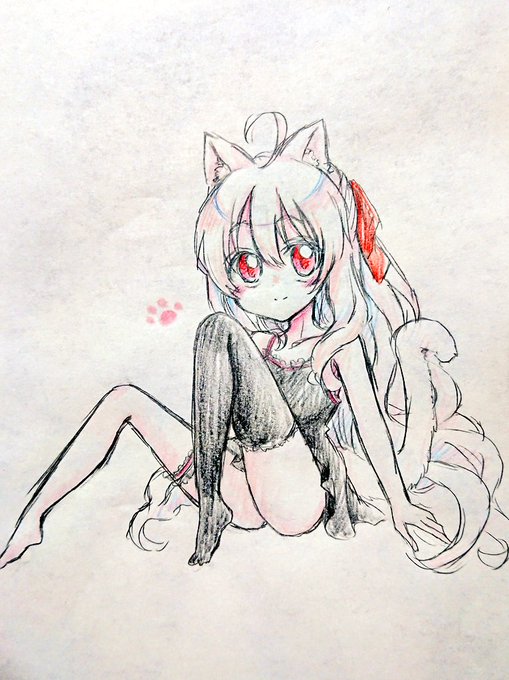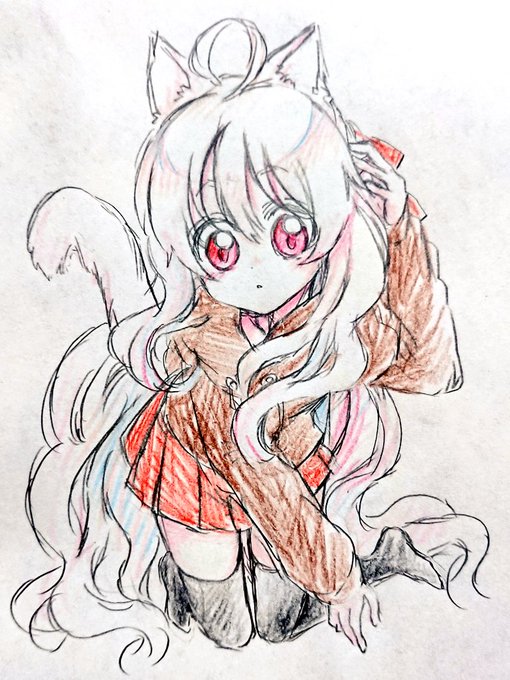 2 2 ネコミミ月美、今度はこんな感じで。 #猫の日 #落書き #色鉛筆 23/02/22 21:14