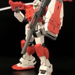 HGUC 1/144 パワード・ジム 完成 イメージカラーは赤 小隊の近接担当 バズーカを乱射しながら突っ込んで切りまくるイメージですね ショルダアーマー等微妙に配色を変えました #ガンプラ #ガンプラ好きと繋がりたい #ガンプラの画像貼るとRTされると聞いて