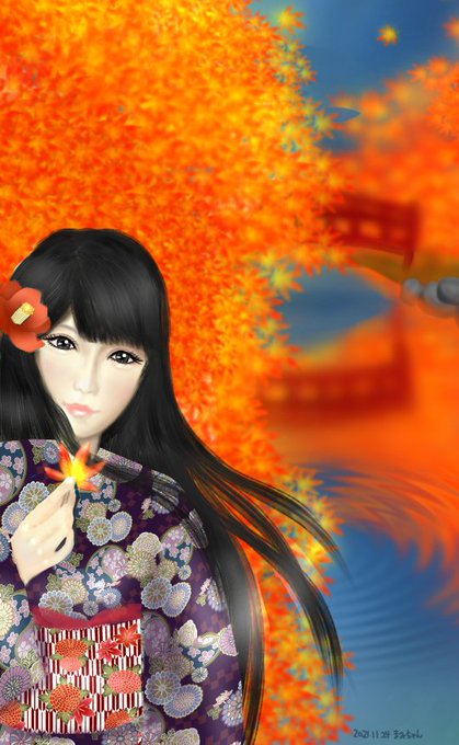 今回、オリジナルキャラクターをリアル風に描いてみました! 名前は秋香(あきか)です!よろしくお願いします! 秋香と紅葉🍁 #オリジナルキャラクター #オリジナルイラスト #紅葉 #少女イラスト #イラスト好きな人と繋がりたい #絵柄好みって人にフォローされたい