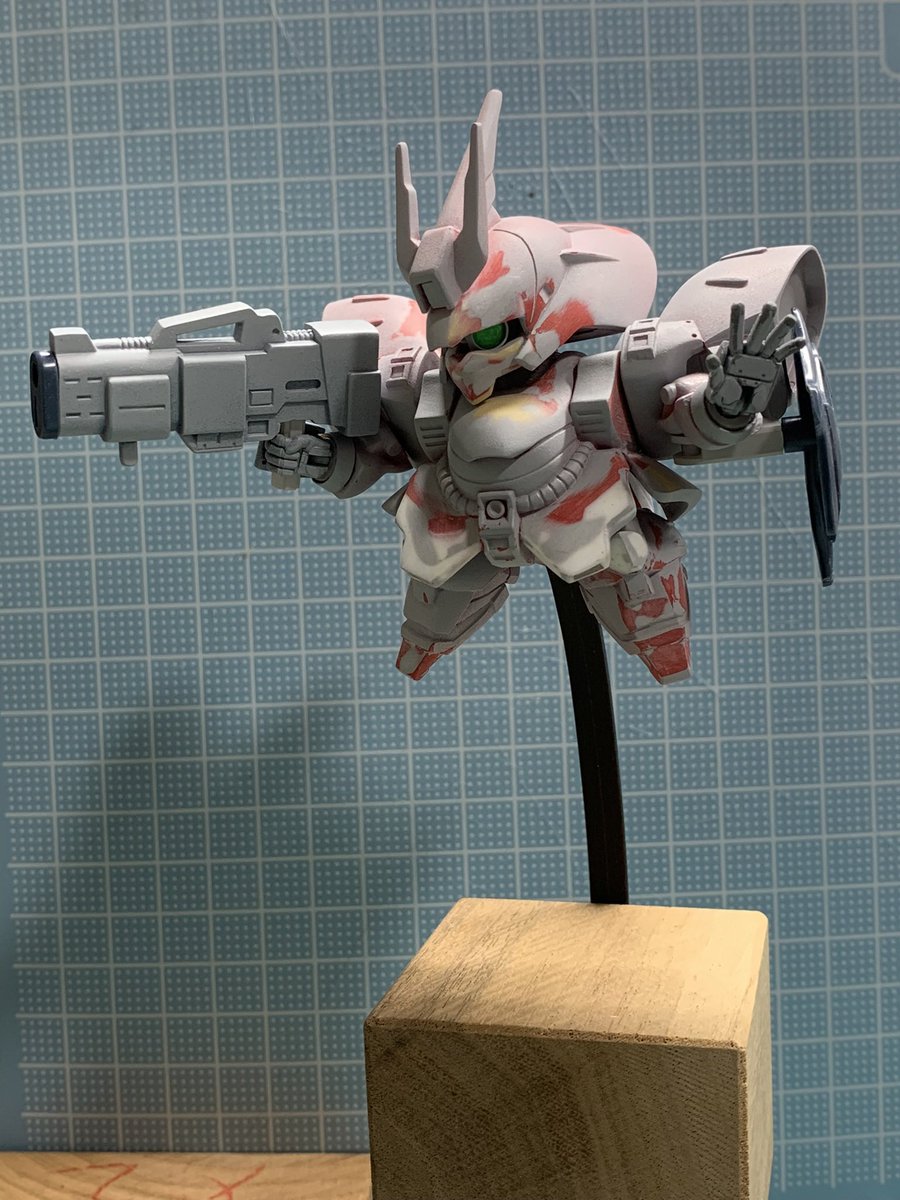 「斜め後ろのジオング」の反対側はこんな感じでした。顔と胴体のバランスを改造しました😊凄く後から気づいたけど腕の黄色い所、ちょと塗り間違えてた…🤔楽しかったからまぁいいか♪ #ガンプラの画像貼るとRTされると聞いて #ガンプラ改造 #ガンプラは自由だ