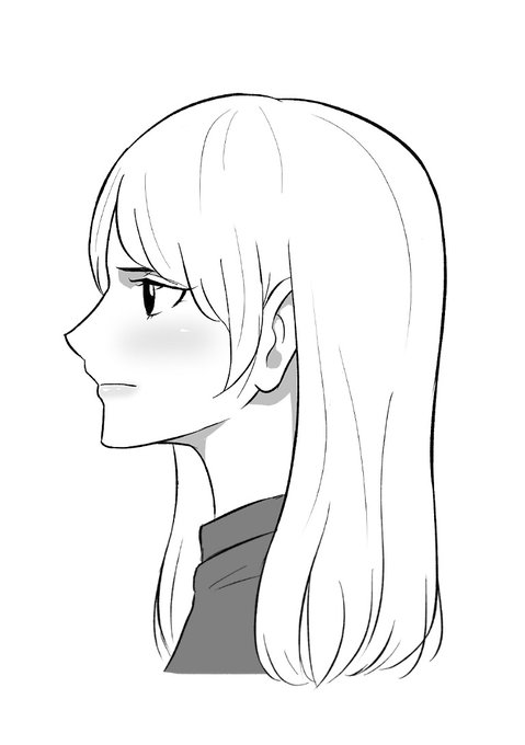 横顔練習!髪のタッチは立体がわかる程度に加える感じ?髪のデフォルメが難しい~。それと今日はアオリ構図時の目の形で大苦戦したので勉強します… #イラスト練習 #日々描く #絵描きさんと繋がりたい