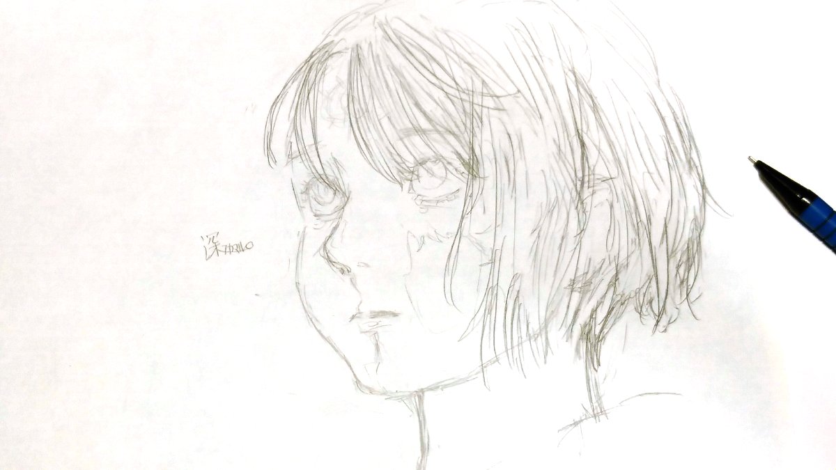 一応完成しました!! 万年筆の一発描きです。(色は悩んでる) 最近は中学生の絵師さんが増えてるけど、私も中学生だ!ってもっと主張した方が良いのだろうか… #お絵描き