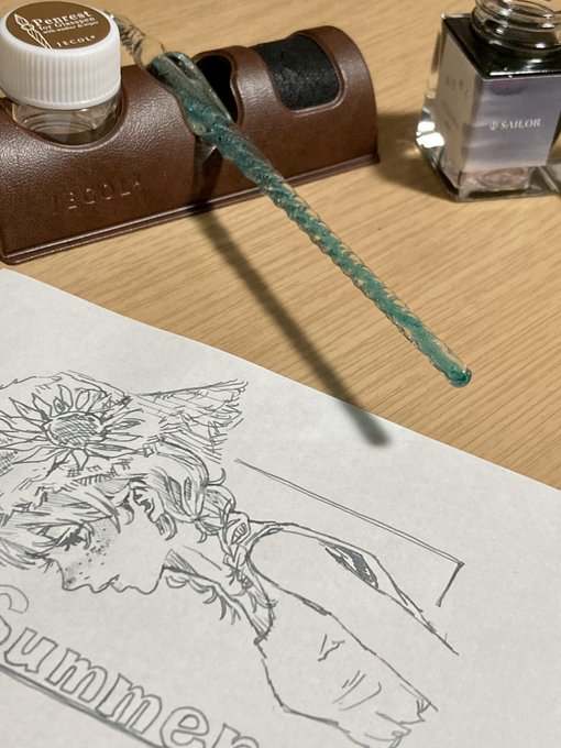 3 12 人生初ガラスペン!! 友人が誕生日にくださったー!! (3枚目色鉛筆) #落描き 23/06/16 20:05