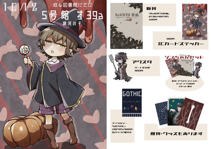 【或図12】お品書き🌟 当日は5号館 す39a「銀河の子」でお待ちしております〜! 他にも頒布する予定なので是非遊びに来てくださいね😄🌟 pixiv.net/artworks/77246…
