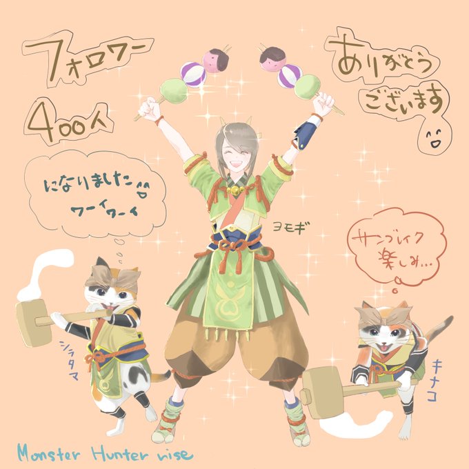 おかげさまでフォロワーさん400人になりました カムラの里の茶屋の元気娘ヨモギさん描いてみました! 今は模写ばっかりしてますが これからはデフォルメとか練習したいな これからもどうぞよろしくお願いいたします😊 #モンハンライズ #illustration #お絵描き
