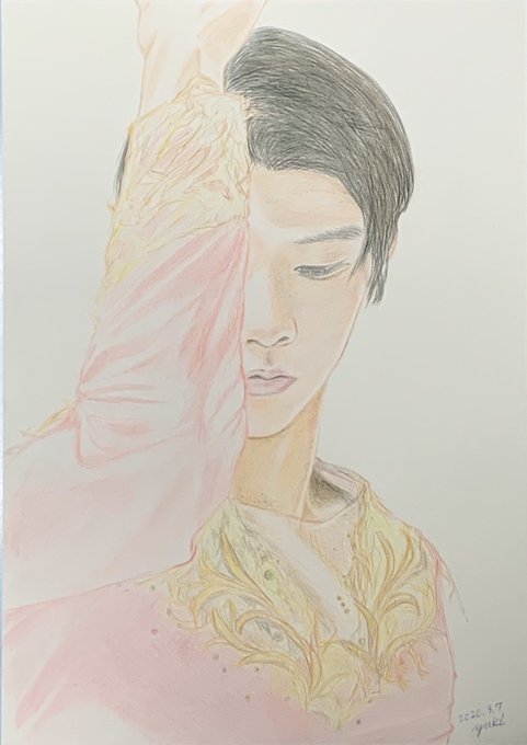 16 163 #羽生クラスタ絵画部 #羽生結弦 #YuzuruHanyu #天と地と #鉛筆画 #水彩画 #色鉛筆 #アナログイラスト 久々の水彩画、上手く塗れず色鉛筆も使っちゃいました。白の絵の具とかなかったのでビジューとか白抜きでとかやる技術は私にはなくステキな衣装再現できず申し訳ない💦 21/09/05 13:33