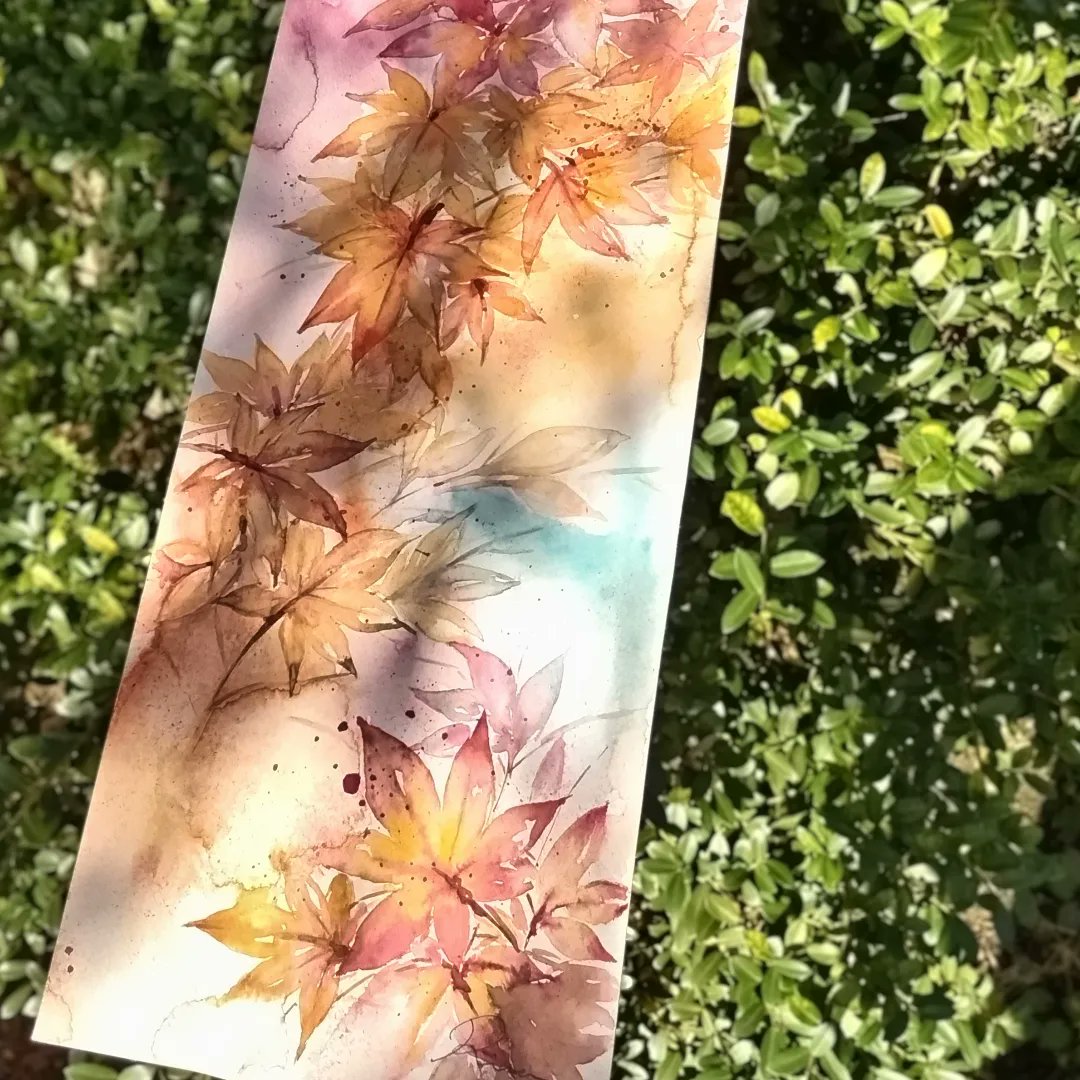 ご依頼で描いてる「季節の絵」 秋田市内の歯医者さんで季節ごとに中身をかえて展示させていただいてます☺️絵に合わせて額縁も製作しているので規格外のサイズや形で絵を描けます✨ #作品を載せて自分の作品を知ってもらおう #今年描いた絵を晒そう #透明水彩 #アナログ絵描きさんと繋がりたい