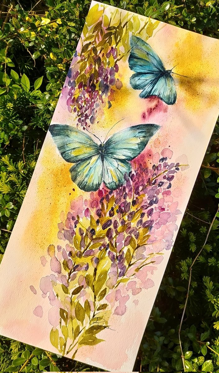 #どこかの誰かに刺さればそれで良い 透明感、青、蝶々 どれも大事( ◜‿◝ )♡ #木工 #ウッドレジン #水彩画 #透明水彩 #秋田 #絵描きさんと繋がりたい #ハンドメイド好きさんと繋がりたい