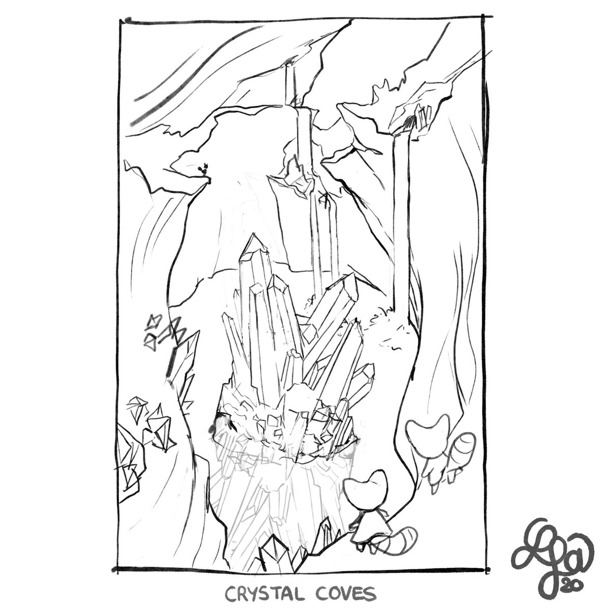 Day 28: crystal coves 💎 In some well hidden places of our world, powerful crystals grew, they are protected from humans greed by many creatures, with magic fields. #Inktober #buildaworldin31days