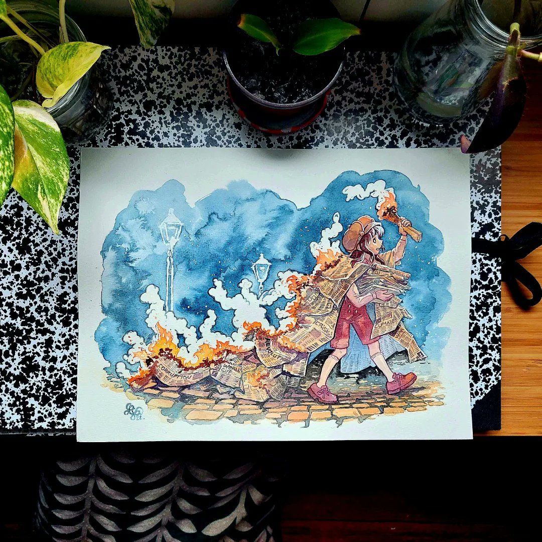 🔥Cloaktober 1: Cloak of burnt papers " titre alternatif : Hottest news #inktober #cloaktober #ClimateCrisis