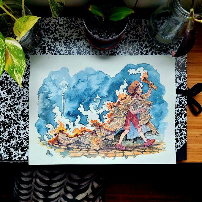 🔥🔥 The cloak of burnt papers🗞️📰 (inspiré des themes "fire cloak" et "paper cloak" de la liste #cloaktober de @Anontloudeac 🥰 je peindrai cette illustration demain mais en attendant qu'en pensez-vous ?? . . #inktober #inktober2022 #illustration