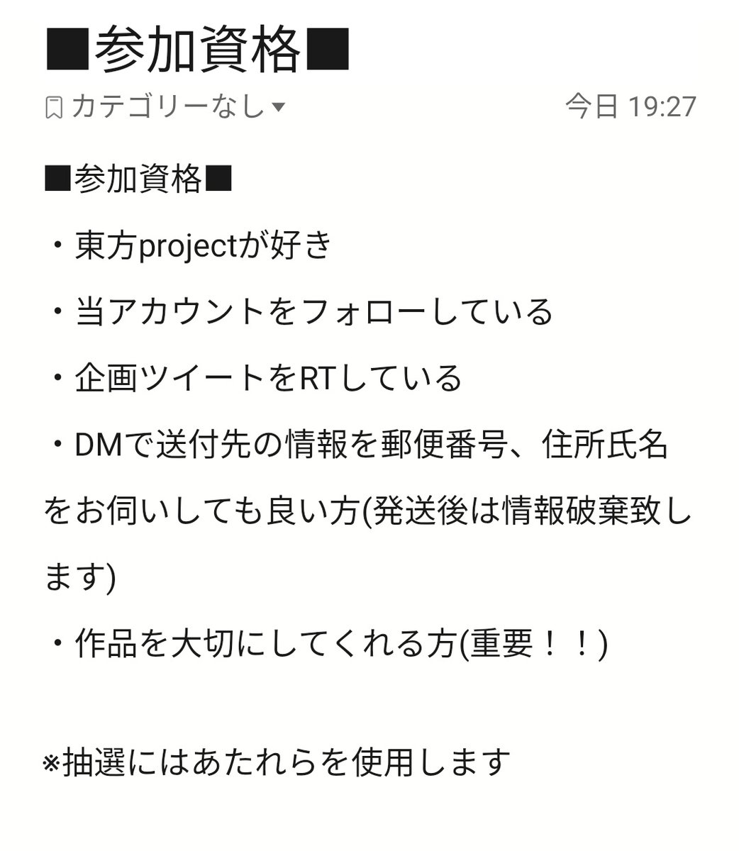 442 389 🎁フォロワーさん6000人記念プレゼント企画🎁 ❤今回初!リクエスト色紙企画! 抽選で1名様に「お好きな東方キャラ(女の子限定)」で描かせていただきます! ♥このアカウントをフォロー&このツイートをRTで応募完了! ❤締切⇒6/6(土)23:59まで ※2、3枚目の注意書きをよく読んでご参加ください 20/05/29 19:30