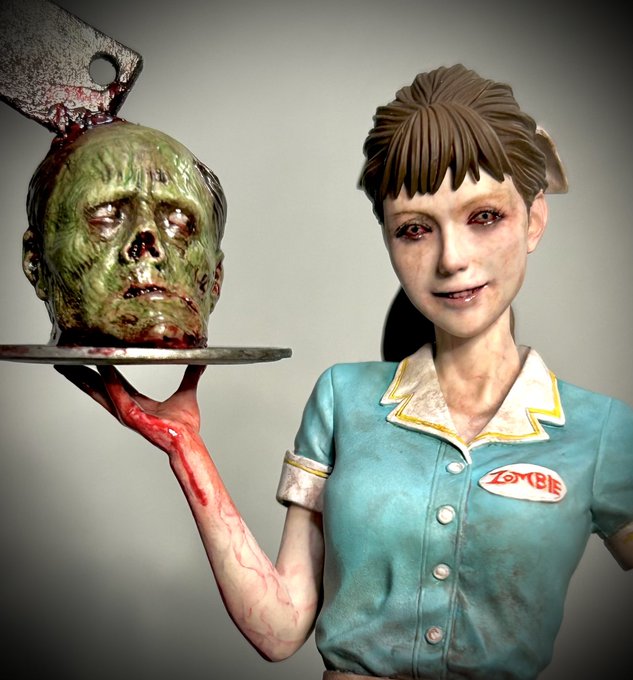 ゾンビウエイトレス出品致しました✨🧟✨ 今回はHISATO氏@BiozombieJin とのコラボ作品です‼️ 唯一無二の組み合わせ❗️お見逃しなく😆 どうぞ宜しくお願い致します🤲🏻✨ #which #ヤフオク page.auctions.yahoo.co.jp/jp/auction/c10…