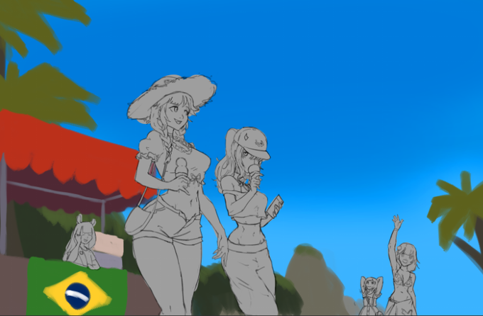 It's not summer here in Brazil nor in the north, but it is always scorching hot in Rio! Felt like drawing Holomyth in the Brazilian spirit. #HOLOctober #HololiveEN #holomyth #artofashes #takamori #inART #teamates #ameliaRT #deadbeats #callillust #gawrt