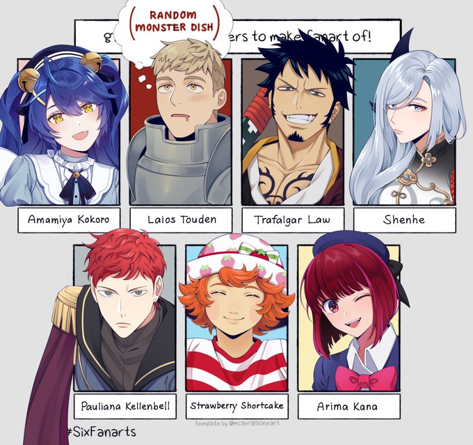 finally done!! i wanted to challenge myself and draw characters ive never drawn before 😤 thank u to everyone who suggested one! #SixFanarts (technically 7 but oh well)