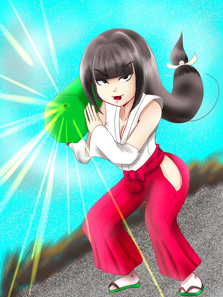 例のアレ🙏 傘をかぶった足軽のポーズ。 #絵柄が好みって人がいればいいなぁ