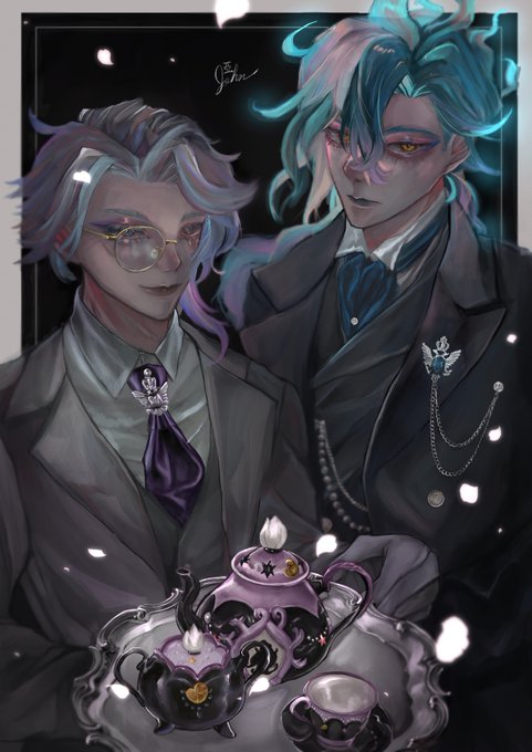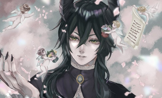 𝑑𝑎𝑟𝑘 𝑎𝑓𝑡𝑒𝑟𝑛𝑜𝑜𝑛 𝑡𝑒𝑎☕️🦇🕸💀 #twstファンアート #twst_執事企画2 に若様で参加させていただきました!耳かけ+一つ結びで給仕スタイルの若様です…!! 👆上記タグより他参加者様の素敵な執事が見れますよ〜!