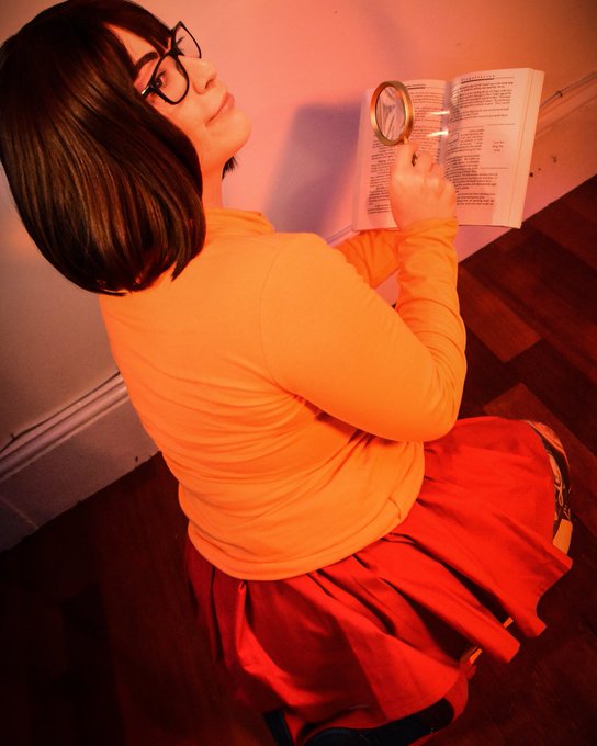 I love books 😈📚💦 📸 Photographer 📸 @lancelotchamberlain . 💫 Edited/Model Lady Firelight 🔥⚔🔥 . 👗Costume AriShae Cosplay @AriShaeCosplay . #velma #scoobydoo #jenkies #velmacosplayer #velmacosplay #cosplay #naughty #model #cosplaygirl #nerdydirtyinkedandcurvy #nerdygirl