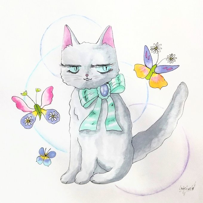 色選びに迷いいろんな人の見解でグレーが多かったので色が決まり完成🤗🌺 ありがとうございます✨ #イラスト #お洒落 #ネコ #猫 #イラスト好きな人と繋がりたい #イラストレーターさんと繋がりたい #コピック #水彩 #illustration
