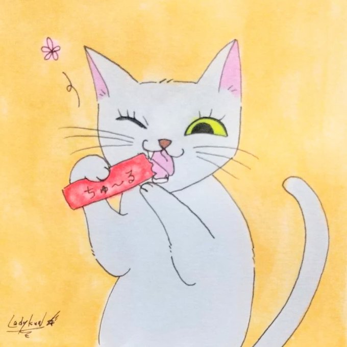 いつの間にかちゅ~るデビューしたのね~🐈💞 #イラスト好きな人と繋がりたい #絵描きさんと繋がりたい #イラスト #ゆるイラスト #愛猫 #オリジナルキャラクター #猫 #ネコ #一日一絵 #毎日投稿 #お絵描き #コピック