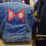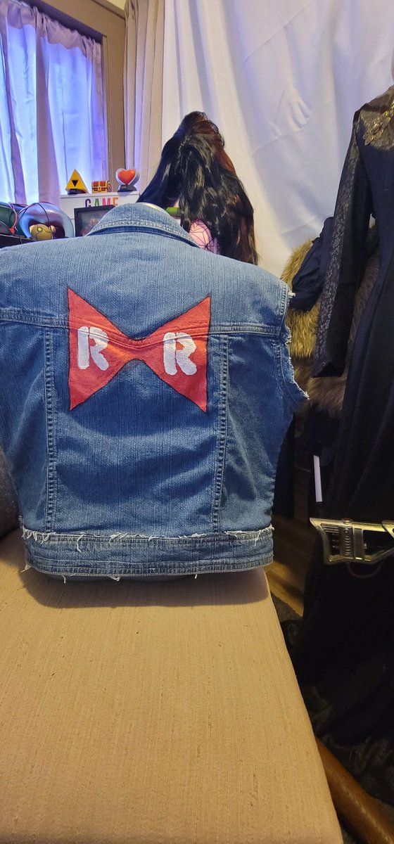 I finally took a picture if the back of Android 18s jacket 😁 She's still not done though, I want to size it down a bit 😅 #dbz #android18 #cosplay #fabricpaint