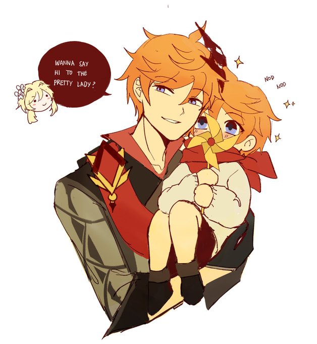 baby childe, baby childe baby childe,,,,,,,,,, 😭😭😭🧡 SO CUTE ueueue a little piece of chilumi ft. baby childe......... he's so happy to meet her... wwahhh (lumine, pls hold him!!!) #genshinimpact #chilumi